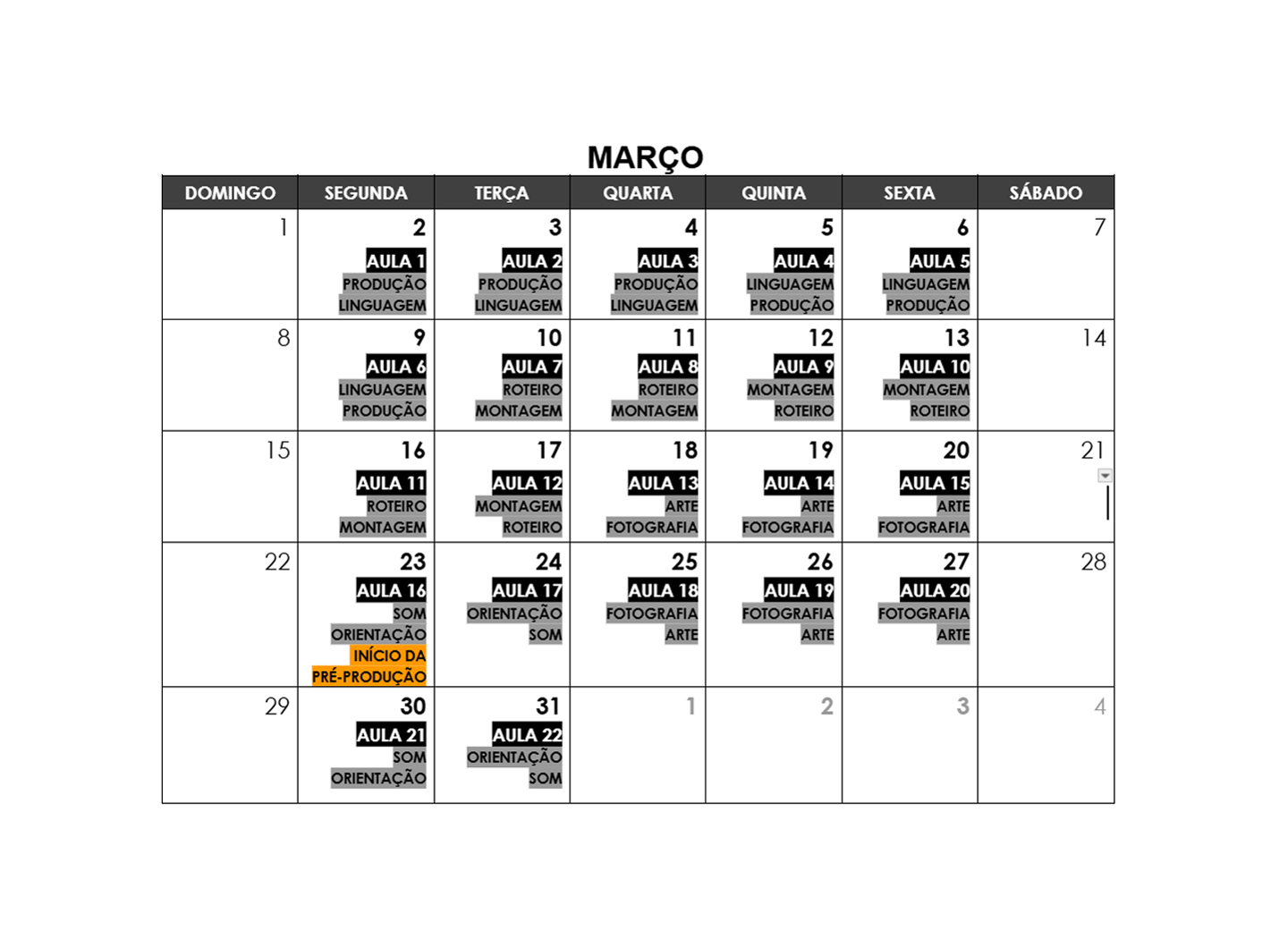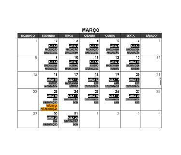 Os participantes terão acesso a uma Apostila Digital, contendo resumos teóricos, descrição de processos, exemplos de documentos, exercícios práticos e uma seleção de bibliografia e filmografia complementar. Durante as aulas, serão utilizados slides explicativos para reforçar os conteúdos abordados, além da exibição de filmes e vídeos exemplificativos. O curso também proporciona contato direto com equipamentos de filmagem (câmeras, lentes, tripés, refletores, rebatedores) e equipamentos de captação de som (microfone direcional e gravador), permitindo que os alunos pratiquem com ferramentas profissionais do mercado audiovisual. Usamos o Google Classroom